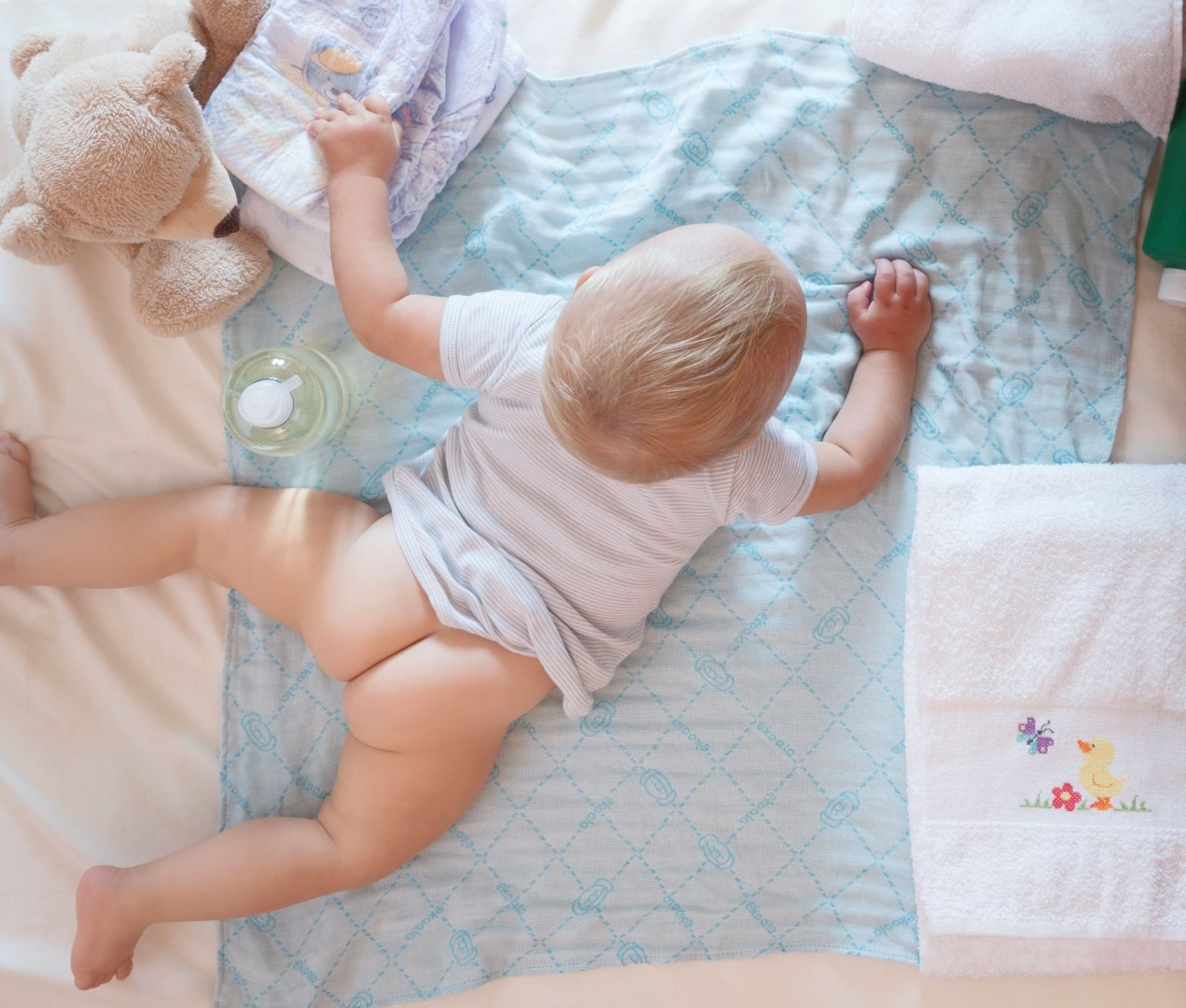 A baby blanket for summer nights, a towel for the first baths, a soft sun and wind cover, a special hiding place for your breastfeeding baby, a swaddle full of cuddles and a perfect bib...Simply Minù!